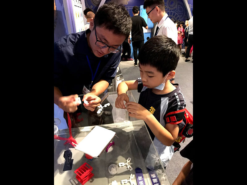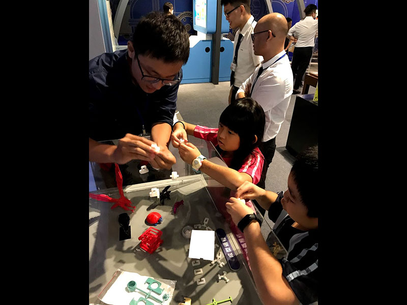 - 現場有精彩豐富的常設展覽,如VR互動體驗、活體展示螢光魚、高科大模具系自造的小型射出成型機,可射出玩具塑膠件等體驗活動包羅萬象,以及自動倉儲模擬機。 為推廣技職教育「動手實作」的創客精神,「技職新樂園」也以寓教於樂的方式,將複雜的技術簡化並安排DIY課程讓民眾近距離接觸,感受各類科技的嶄新風貌。