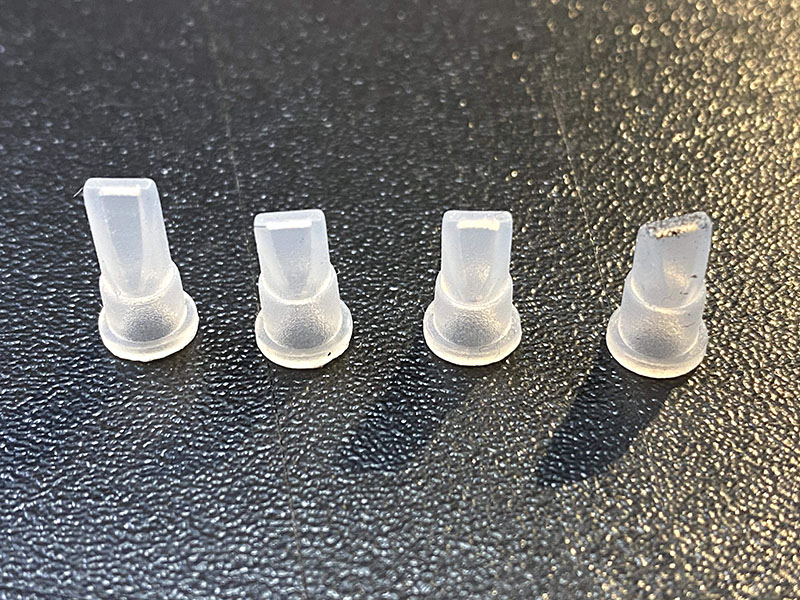 - 本研究所開發的微型矽膠逆止閥產品成果,可簡化產品設計、不易卡垢、降低成本、快速試量產、容易更換維修等,有助於提高產品價值和市佔率。除了適用於家用和商用飲用水機外,亦可擴展到生物醫學、船舶、醫療、和其他微流體控制相關領域應用。幾件實作成果,包括:立式矽膠射出成型機、LSR液態矽膠射出模具、微型矽膠逆止閥產品等。