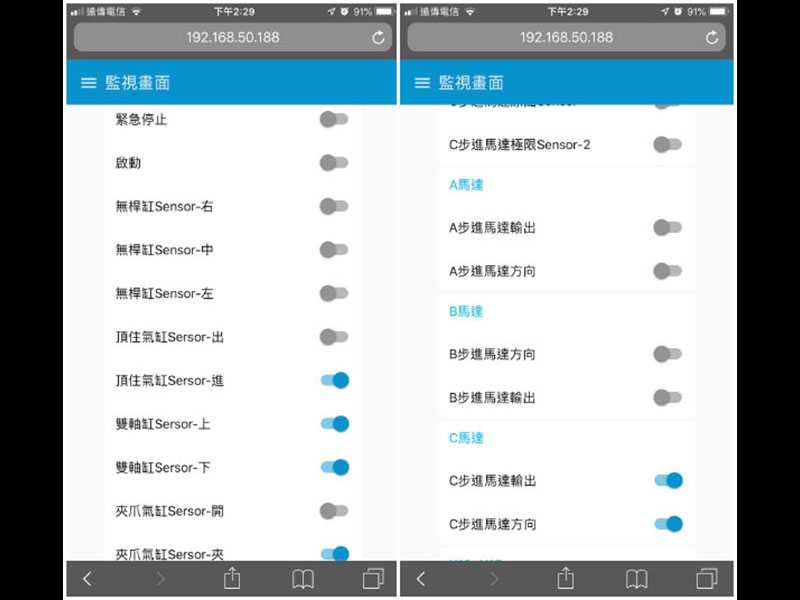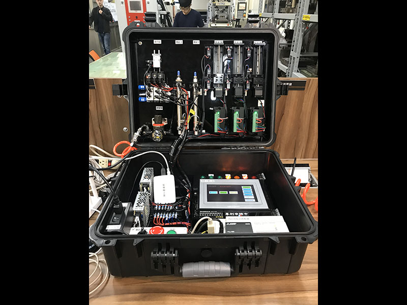 - 本教學平台由智慧機上盒、步進馬達、筆型氣缸、夾爪型氣缸、氣壓壓力調整、電磁閥、可程式邏輯控制器、人機介面等模組所組成。透由此教具可以學習到步進馬達控制、氣缸動作控制、PLC程式設計編寫、人機操作介面設計編寫、網路設定及網頁程式編寫等知識技能。更可透由loT智慧監測模組,以跨平台可攜式設備,即可在遠端即時監控設備動作,及接點運作狀態等,模擬產業界實際各種控制應用。