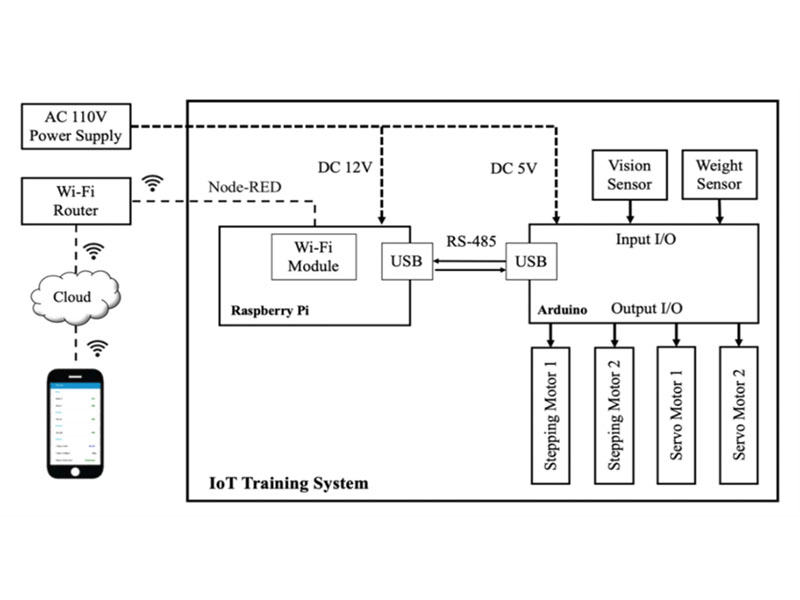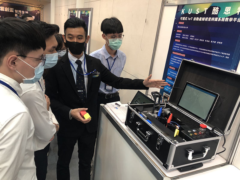 - 本教學平台為產品整合設計研究團隊自行開發,主要因應國內 108 年新課綱裡的核心素養概念,我們研發「可攜式IoT 自動產線視覺辨識系統教學平台」,可幫助修習相關科系之學生實際操作並深入了解該如何運作相關機器。 藉由此產品可使教育單位用較低的成本達到更高的教學品質,推動台灣對於物聯網教育的可行性,使工業 4.0 不再是課本上摸不著、看不見得東西,而是能讓學生藉由動手做,達成物聯網的入門教育 。