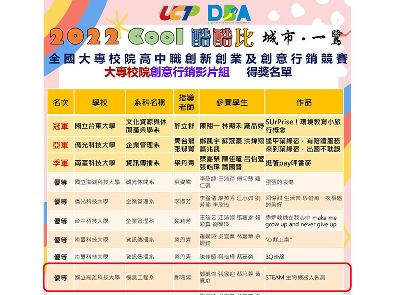 2022 COOL酷酷比-全國大專校院暨高中職 創新創業及創意行銷競賽 (優等獎)