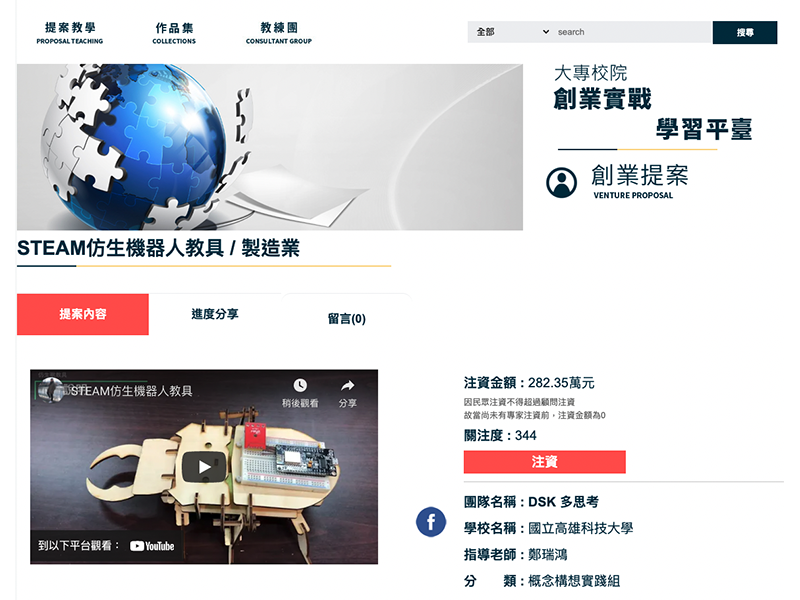 2022 教育部大專校院創業實戰模擬學習平臺 (獲創業補助10萬元,注資金額:282.35萬元)